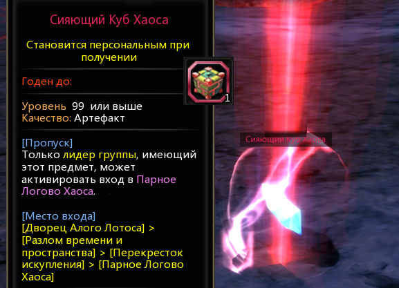Пропуск: Сияющий Куб Хаоса (необходим только лидеру группы)